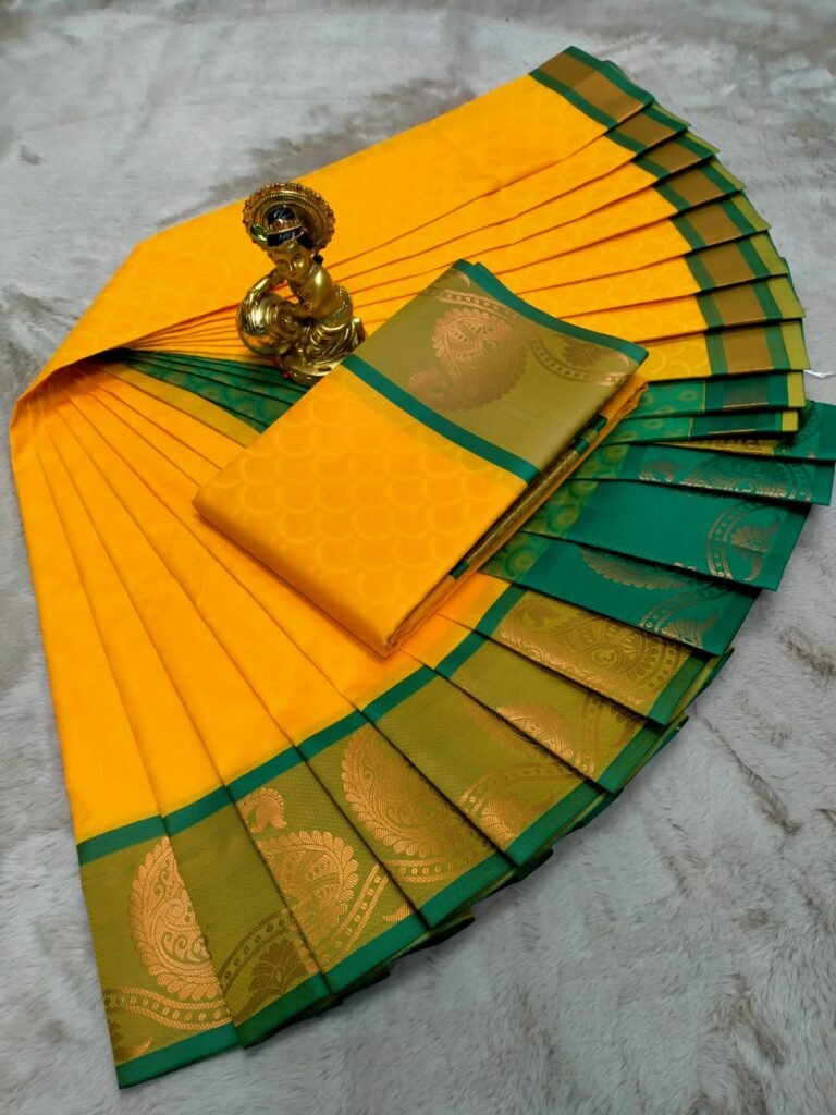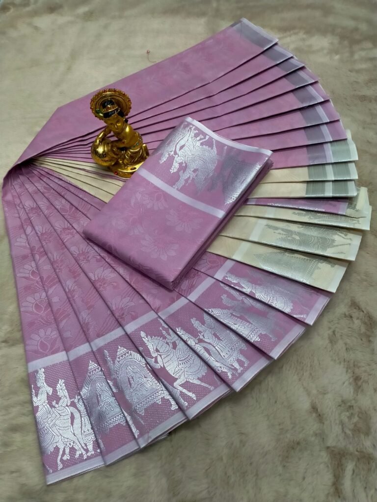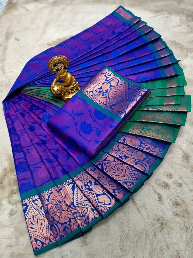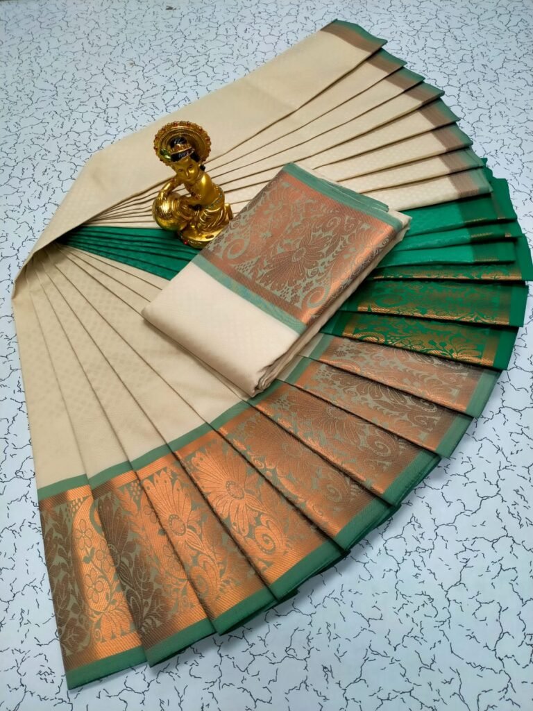 Kanchipuram Silk Saree – Known for its rich silk and intricate zari work, Kanchipuram sarees are a symbol of South Indian tradition and elegance.